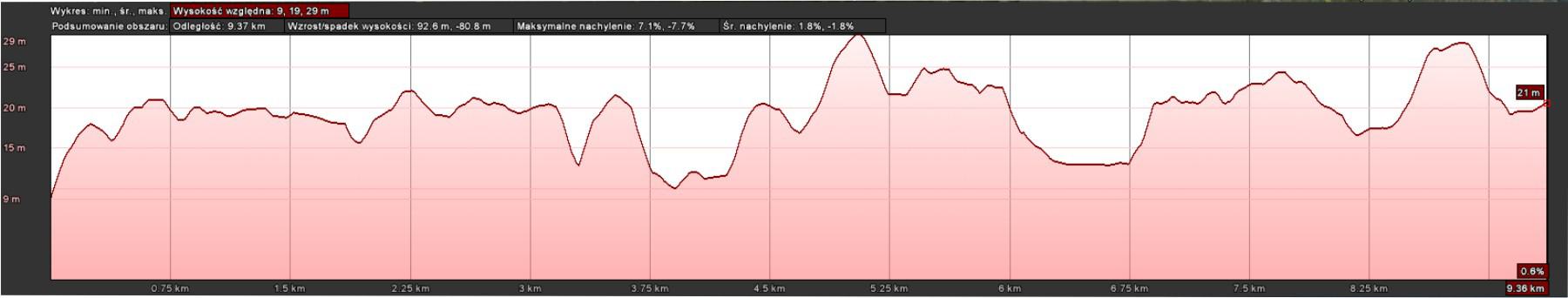 - 艁膮czna wysoko艣膰 podej艣膰 na trasie oko艂o 47,7 metrów na odcinku 6,74 km (58%)